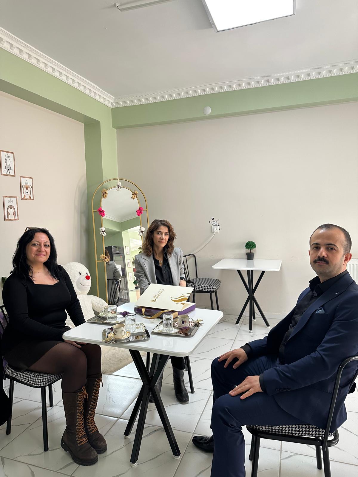 Üniversitemiz Kariyer Merkezi Müdürü Dr. Öğr. Üyesi Sabri TOĞLUK ve Müdür Yardımcısı Arş. Gör. Ebru GÜL, mezunumuz genç kadın girişimci Meryem TEYMUR’u iş yerinde ziyaret etti.